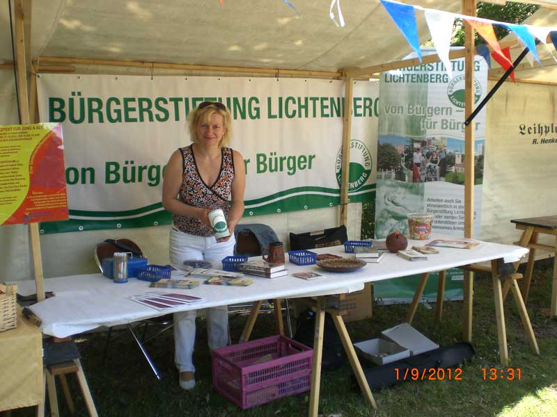 ehrenamtsmesse_2012Die Bürgerstiftung nahm auch in diesem Jahr an der Ehrenamtsmesse im Rahmen des Kiezfestes für Jung & Alt im Park hinter der Volkradpassage in Friedrichsfelde teil. Für etwa zweitausendfünfhundert Besucher und Gäste bot sich ein tolles Bühnenprogramm. Ca fünfunddreißig Projekte, Vereine und Aktive stellten ihre Arbeit vor und warben für mehr ehrenamtliches Engagement für die Gemeinde. Mit interessierten Bürgerinnen und Bürgern fachsimpelte Frau Falk-Vorstandsvorsitzende über die soziale Arbeit der Bürgerstiftung Lichtenberg, incl. ihrer Projekttätigkeit.