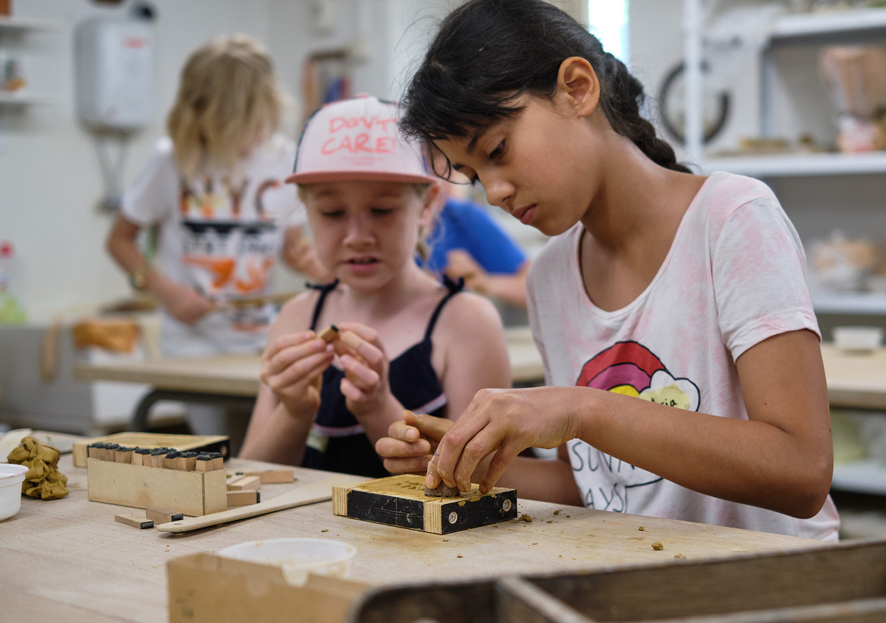 Mädchen und Jungen der 4. Klasse der Grundschule am Fließtal erforschten typische Ziegelbauten und die einstige Ziegelproduktion in Hermsdorf sowie die unterschiedlichen Baumaterialien Lehm und Ziegel. Es entstanden Zeichnungen, Frottagen, ein Groß-Flechtwerk, ein Verbundmauerwerk und eigene Ziegelsteine.